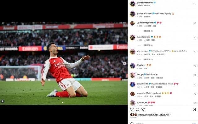 贡献绝平,马丁内利社媒晒滑跪庆祝照:我们继续拼搏!